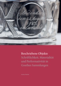 10 einige davon mit Bedacht aufbewahrt, andere jedoch einfach verstaut und vielleicht auch vergessen wurden. Darunter finden sich Objekte aus dem persönlichen Umfeld Goethes ebenso wie Freundschafts- und Liebesgaben, intime Souvenirs, auch Wertvolles aus dem Kunstgewerbe und aufwendige Handarbeiten. In den Blick gerieten zudem einige Objekte, deren Provenienz bis dato unklar ist oder die im Zuge der Musealisierung des goetheschen Nachlasses in diesen übernommen wurden. Dazu gehören auch einige der Gegenstände, die aus Wolfgang Maximilian von Goethes Nachlass stammen und durch eine Stiftung dem 1885 gegründeten Goethe-Nationalmuseum in Weimar zukamen.9 Alle Objekte zählen heute zu den Sammlungen der Klassik Stiftung Weimar und gehören überwiegend dem vielfältigen Bestand des Kunstgewerbes sowie dem schriftlichen Nachlass an; unter Letzterem wird zum Beispiel auch das eingangs genannte Seidenband archiviert, auf die Gründe wird später noch eingegangen. Einige dieser Sammlungsgegenstände haben durch Ausstellungen oder spezielle Forschungsinteressen bereits einen größeren Bekanntheitsgrad erlangt, andere wurden im Zuge der Recherchen erst an die Oberfläche gespült. Trinkgläser, Handschuhe, Schreibzeuge, Untertassen, ein Seidenband und anderes mehr – sie unterscheiden sich in ihrer Herkunft und ihrem Gebrauch, waren funktionell oder von hohem ideellen Wert und werden heute an verschiedenen Orten unter spezifischen Bedingungen aufbewahrt. Gemeinsam ist den Objekten jedoch ein besonderes Verhältnis zu Schriftzeichen: Sie tragen Auf- und Inschriften, sind aufwendig schriftlich ausgeschmückt, offiziös ausgezeichnet oder beinahe unleserlich, geradezu klandestin markiert. In jeder Hinsicht variabel, macht sie das zu Varia im besten Sinne, zu Dingen, die sich nicht ohne Weiteres kategorisieren lassen und schon aufgrund dieser Widerständigkeit eine gewisse Sprachmacht entwickeln. Bei der Auswahl der Objekte geht es weder darum, mit ihrer Hilfe einen weiteren Beitrag zur Exegese des Lebens und Schaffens Goethes und seiner Familie zu leisten, noch sollen im Sinne einer Aufmerksamkeitsökonomie vermeintlich marginalisierte Nebendinge aus dem persönlichen Nachlass in den Stand von Reliquien gehoben werden. Was die Sammlungen Goethes neben ihrer Vielfältigkeit für diese Arbeit so interessant und wertvoll macht, ist vielmehr die häufig äußerst dichte Überlieferungskette der Bestände. Neben den Aufzeichnungen Goethes, vor allem in seinen Tagebüchern und den Korrespondenzen, geben mehrere detaillierte Inventare Aufschluss, die direkt nach seinem Tod und in der Folgezeit angefertigt wurden. So lassen sich oft die Umstände rekonstruieren, unter denen ein Gegenstand Eingang in den Haushalt fand, ob und wie er sich darin integrierte und wo er zum Zeitpunkt von Goethes Tod aufbewahrt war. Daran anschließend sind die Schriftwechsel seiner Enkel und der Schwiegertochter Ottilie von Goethe untereinander sowie mit den Nachlassverwaltern hilfreich bei der Kontextualisierung der zum Teil komplexen Überlieferungssituation. Denn gerade die von Goethes Enkel Wolfgang Maximilian beschrifteten Gegenstände zeichnen sich durch vielsagende Biografien aus. Diese umfangreichen Dokumentationen sind essenzieller Bestandteil der Erschließung, dank ihnen werden die Prozesse und Strukturen sichtbar, in denen die Sammlungsstücke zur Sprache kommen. Sie geben