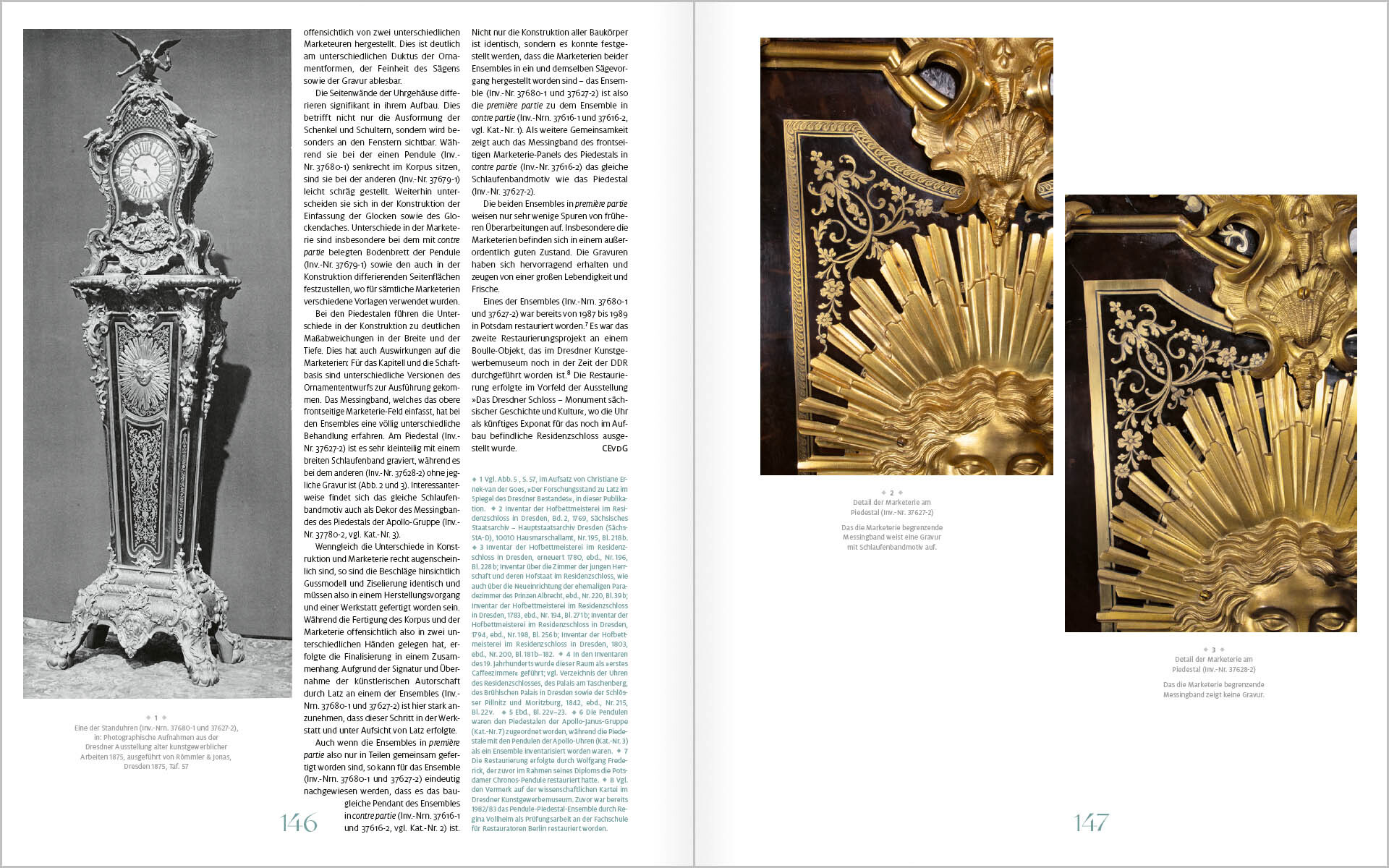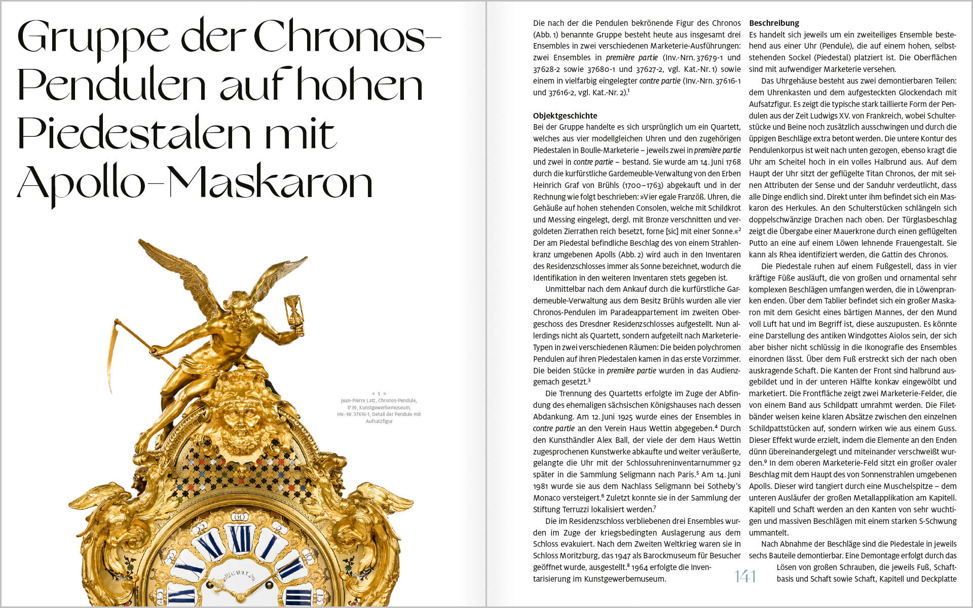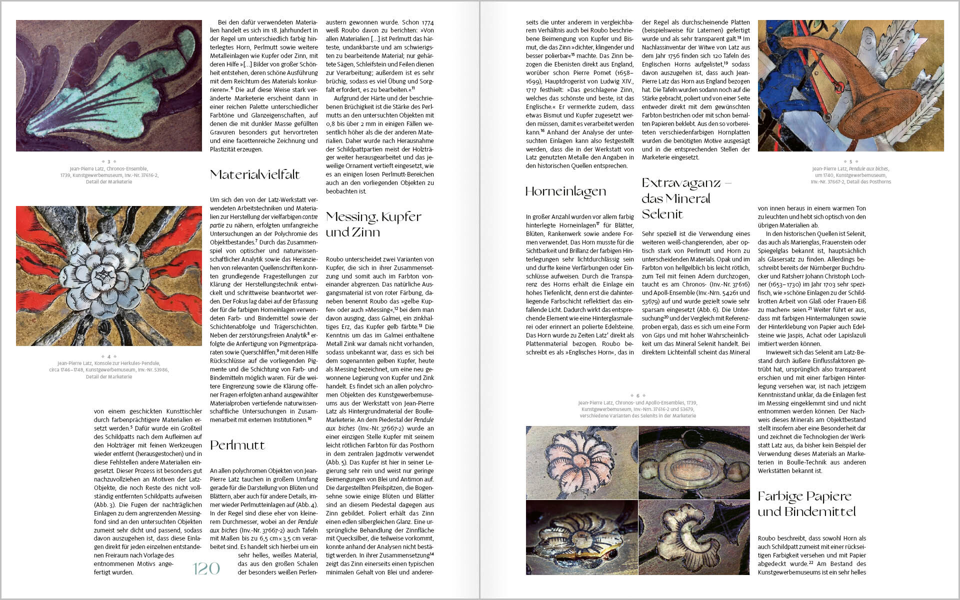 Ein außergewöhnlicher Fund im Inneren von prachtvollen Uhren, die heute zum Bestand des Kunstgewerbemuseums der Staatlichen Kunstsammlungen Dresden gehören, öffnete ein spannendes Kapitel der Kunst- und Kulturgeschichte: Mit der handgeschriebenen Signatur und dem Hinweis »Fait à Paris« hatte sich der Pariser Kunsttischler Jean-Pierre Latz (1690/91–1754) in ihnen verewigt. Die Uhren gehören zu einem umfangreichen Konvolut französischer Möbel, das die große Faszination des Dresdner Hofes für Pariser Handwerkskunst eindrucksvoll belegt. Latz’ virtuose Marketerien und exzellent geformten und gearbeiteten Beschläge verkörpern das französische Savoir-faire dieser Epoche auf höchstem Niveau. Die...