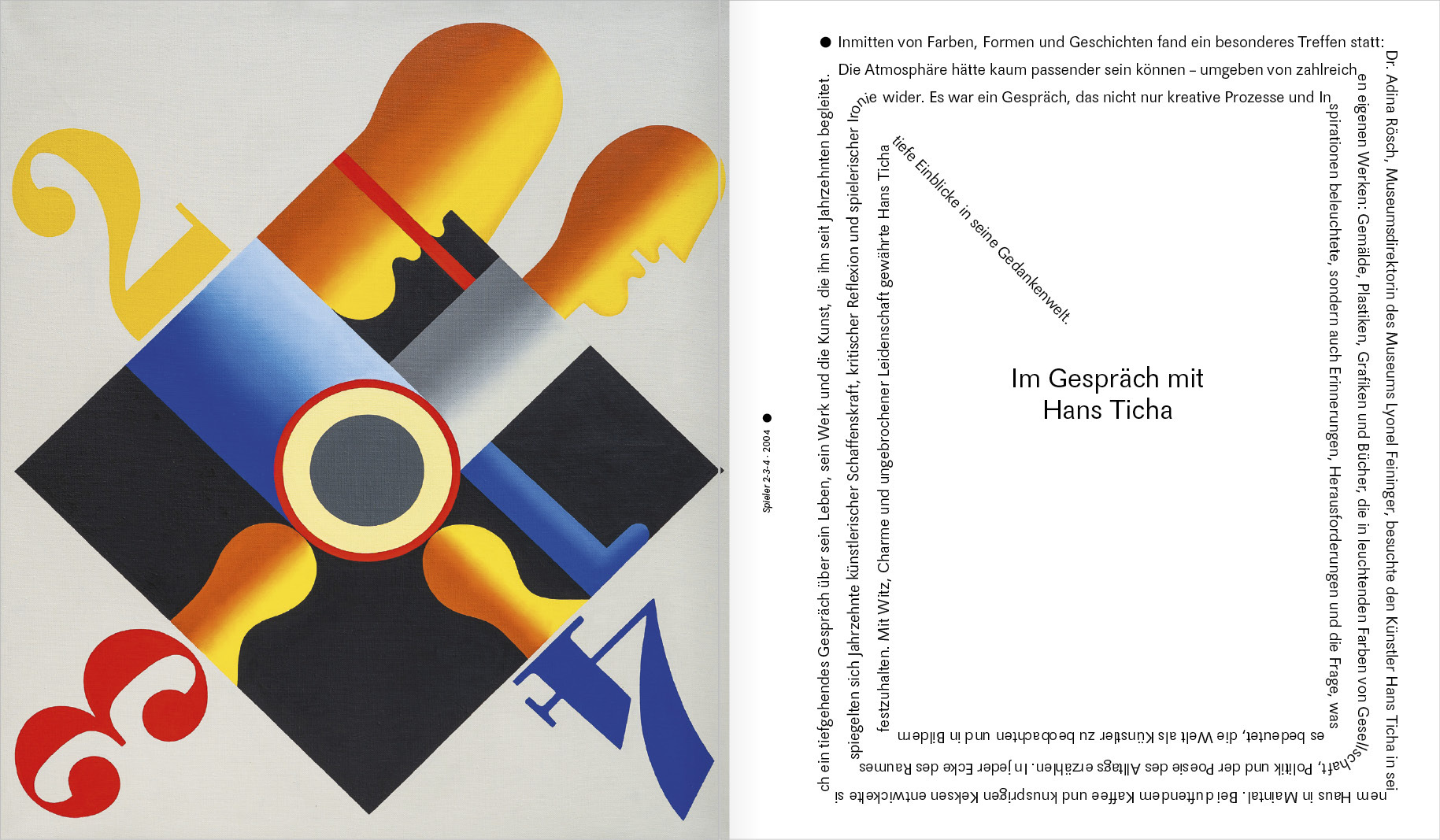 Hans Ticha (geb. 1940) zählt zu den prägendsten Künstlern der deutschen Nachkriegsgeschichte. Sein Werk bewegt sich zwischen Pop-Art, Konstruktivismus und grafischer Strenge, kombiniert mit einer unverkennbaren Formsprache. Mit seinen überzeichneten, oft kugelrunden Figuren entwickelte er eine ironische Bildwelt, die sich kritisch mit Gesellschaft, Politik und Ideologien auseinandersetzt. Tichas Werke orientieren sich mitunter an dem Bauhaus-Künstler Oskar Schlemmer, aber auch an Fernand Léger und dem russischen Konstruktivismus.