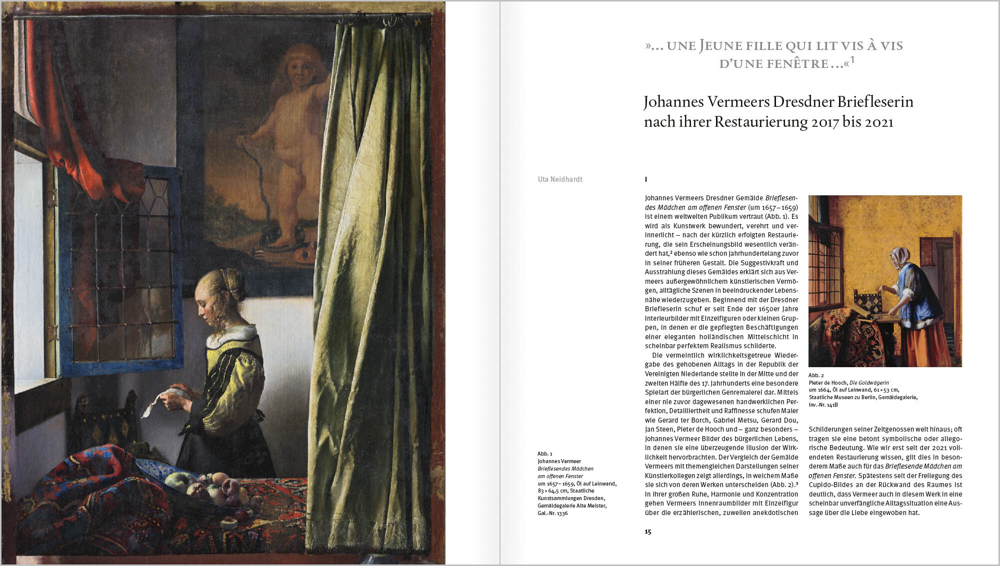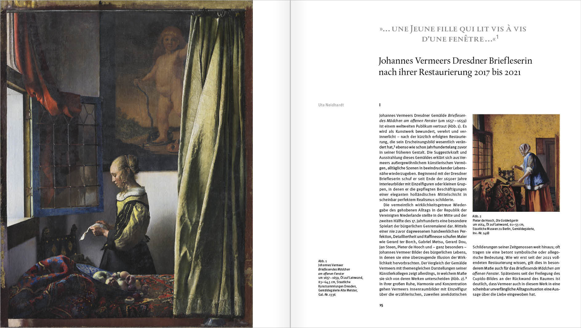 Johannes Vermeers Gemälde Brieflesendes Mädchen am offenen Fenster ist einem weltweiten Publikum vertraut und wird bewundert und verehrt. Die in den Jahren 2017 bis 2021 erfolgte Restaurierung hat sein Erscheinungsbild jedoch wesentlich verändert. Die spektakuläre Abnahme einer späteren Übermalung im Bildhintergrund brachte die Darstellung eines Liebesgottes ans Licht, der als Bild im Bild nun wieder mit der Figur der Briefleserin verknüpft werden muss. Dies legt eine neue, jahrhundertelang verdeckte Lesart des Gemäldes nahe: Der Liebesgott fungiert als bedeutungsschwerer Kommentar zur Szene, die der Betrachtende nun eindeutig als amouröse Situation wahrnimmt. Im Gemälde haben sich die Komposition, Licht- und Farbstimmung sowie Ausstrahlung grundlegend gewandelt.