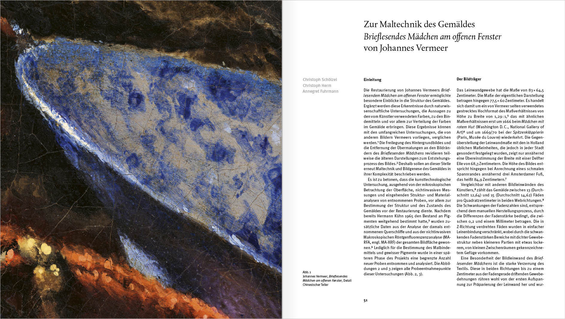 Die vorliegende Publikation enthält Forschungs- und Untersuchungsergebnisse, die das restaurierte Gemälde aus der Sicht des in einem vierjährigen Projekt zusammenarbeitenden Teams europäischer und amerikanischer Institutionen aus den Bereichen Restauration, Naturwissenschaften, Kunstgeschichte, Mathematik und IT betrachten. Sie soll dazu beitragen, das Gemälde Vermeers noch umfassender zu beschreiben, den Prozess seiner Entstehung zu klären und die Dresdner Entscheidung zur Abnahme der späteren Übermalung für Fachkollegium und Öffentlichkeit transparent und nachvollziehbar zu machen.
