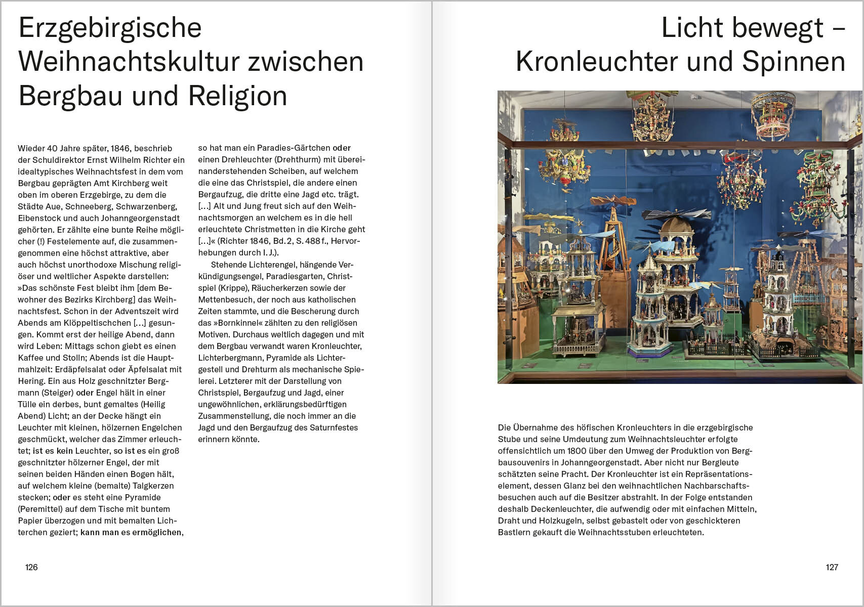 Die meisten Gäste besuchen das Museum für Sächsische Volkskunst in der Weihnachts- und Osterzeit, um sich von den festlichen Dekorationen und den vielen Ständen mit Kauf- und Mitmachangeboten anregen zu lassen. Ganzjährig nutzen Familien den Kinderpfad mit verschiedenen Aktivitäten, während Touristenpaare die landeskundlichen Aspekte schätzen und Stammgäste die wechselnden Sonderausstellungen besuchen. Auch Künstler und Künstlerinnen berichten von der Inspiration durch die Authentizität der Volkskunst. Das Museum vertritt verschiedene Perspektiven, wobei es sich bemüht, die Vergangenheit durch einen fächerübergreifenden kulturhistorischen Ansatz zu beleuchten. Dieses Buch folgt dem Rundgang des Museums, stellt einzelne Exponate vor, dokumentiert Ausstellungstexte und reflektiert Sonderausstellungen.