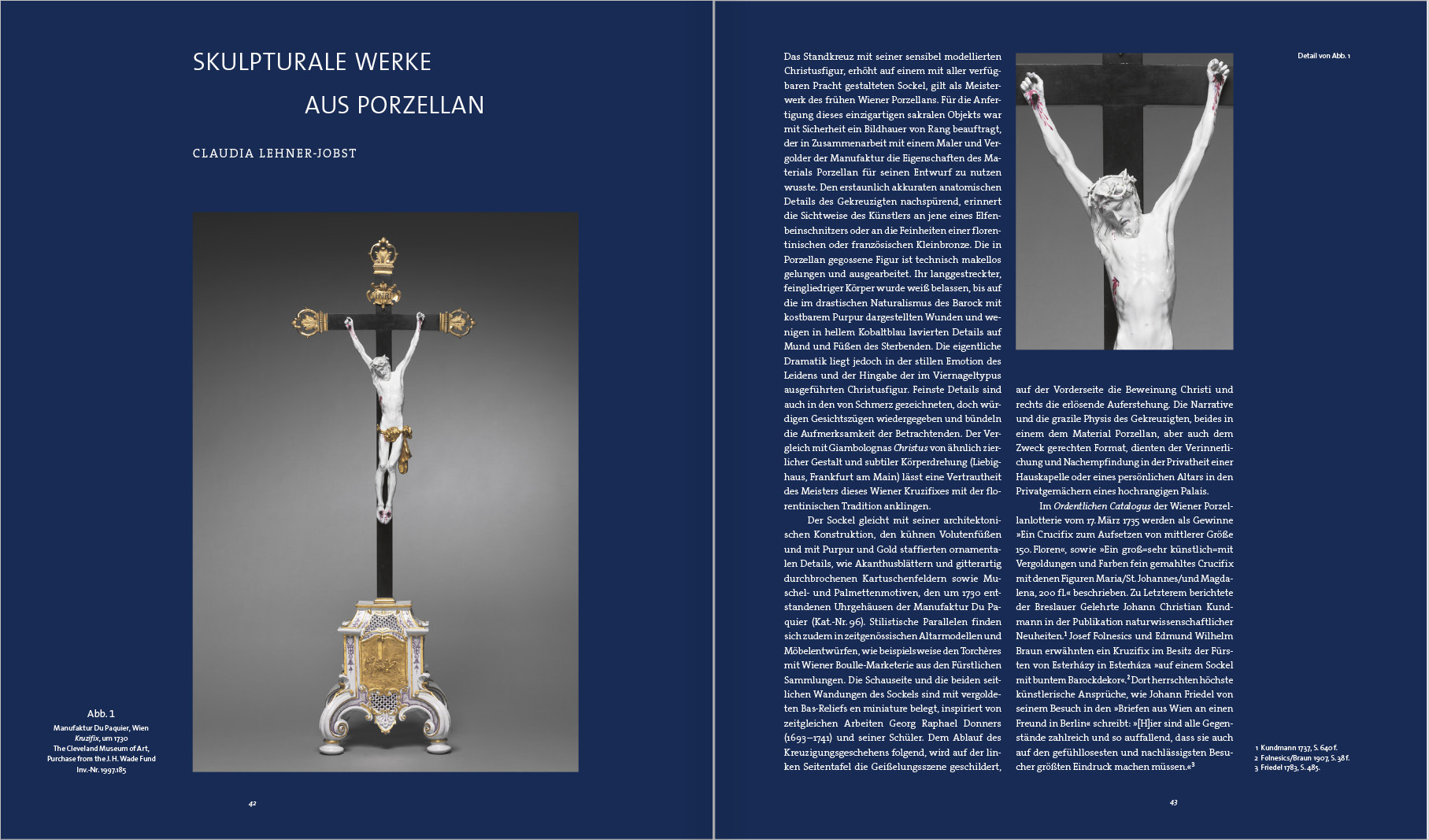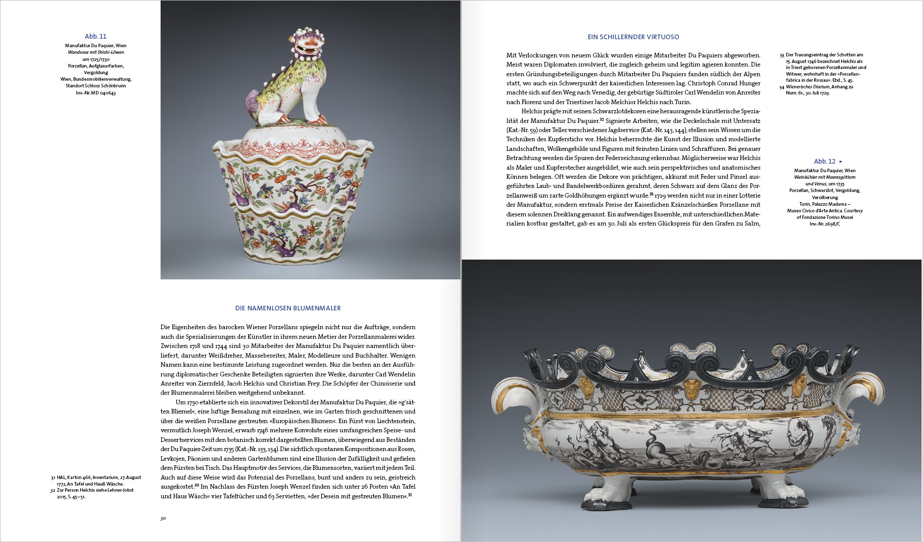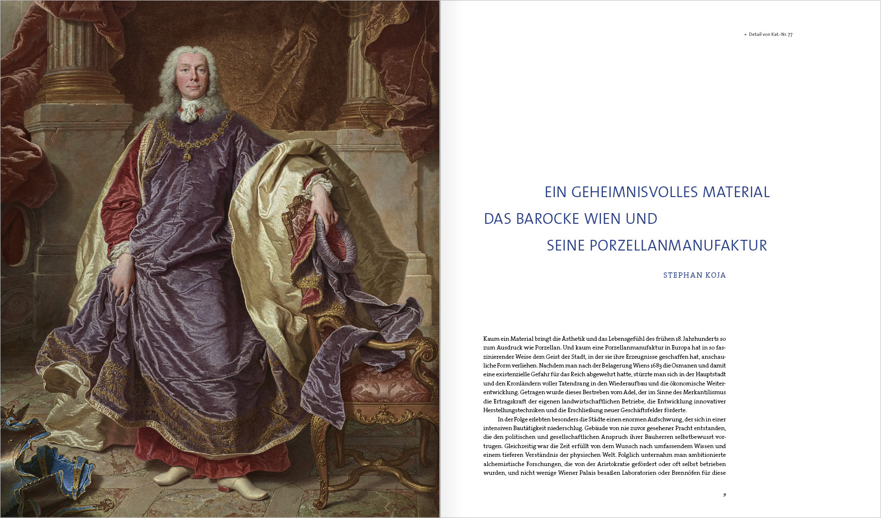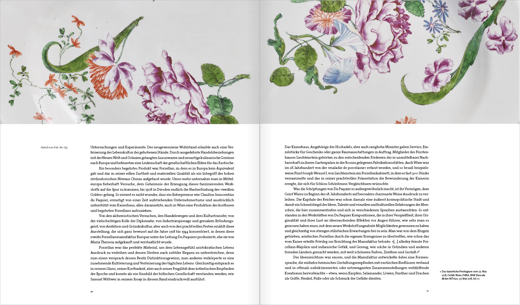 Im frühen 18. Jahrhundert wurde Europa von einer fieberhaften Begeisterung für ein neues Material erfasst: das echte Porzellan. Weiß, fein und glänzend repräsentiert es wie kein anderes das Lebensgefühl dieser Epoche. Am Anfang standen Forschergeist und Sammellust, aber auch das Ziel einer wirtschaftlichen Blüte. Von den Porzellanen aus Ostasien mit ihren nie zuvor gesehenen Farbklängen und Dekoren beeindruckt, machten sich Alchemisten, Mediziner und Apotheker auf die Suche nach der Rezeptur. Schließlich wurde in einem geheimen Laboratorium nahe dem Gartenpalais Liechtenstein 1718 die Wiener Porzellanmanufaktur – die zweite in Europa nach der in Meißen – von dem Entrepreneur Claudius Innocentius du Paquier unter kaiserlichem Schutz gegründet. Ihre charaktervollen Werke reflektieren zeitgenössische Kunst und Naturwissenschaften, aber auch Festkultur und Alltag bei Hof.