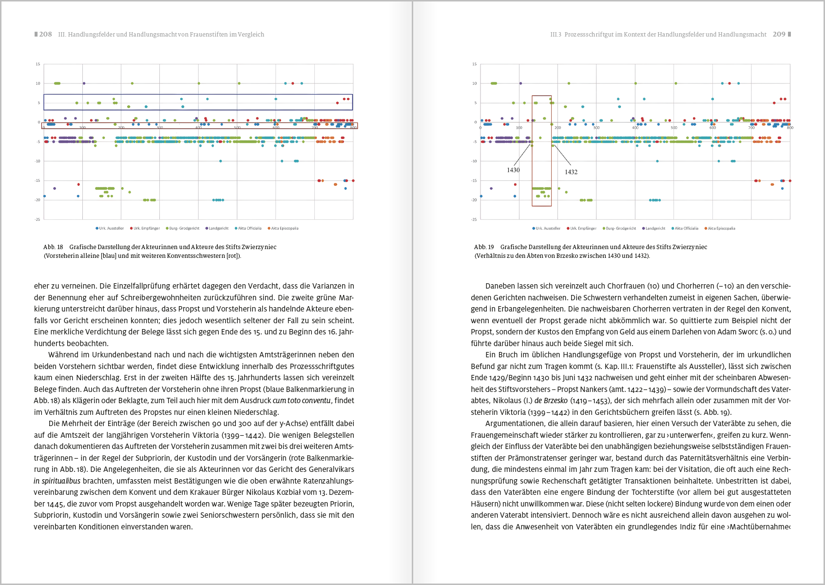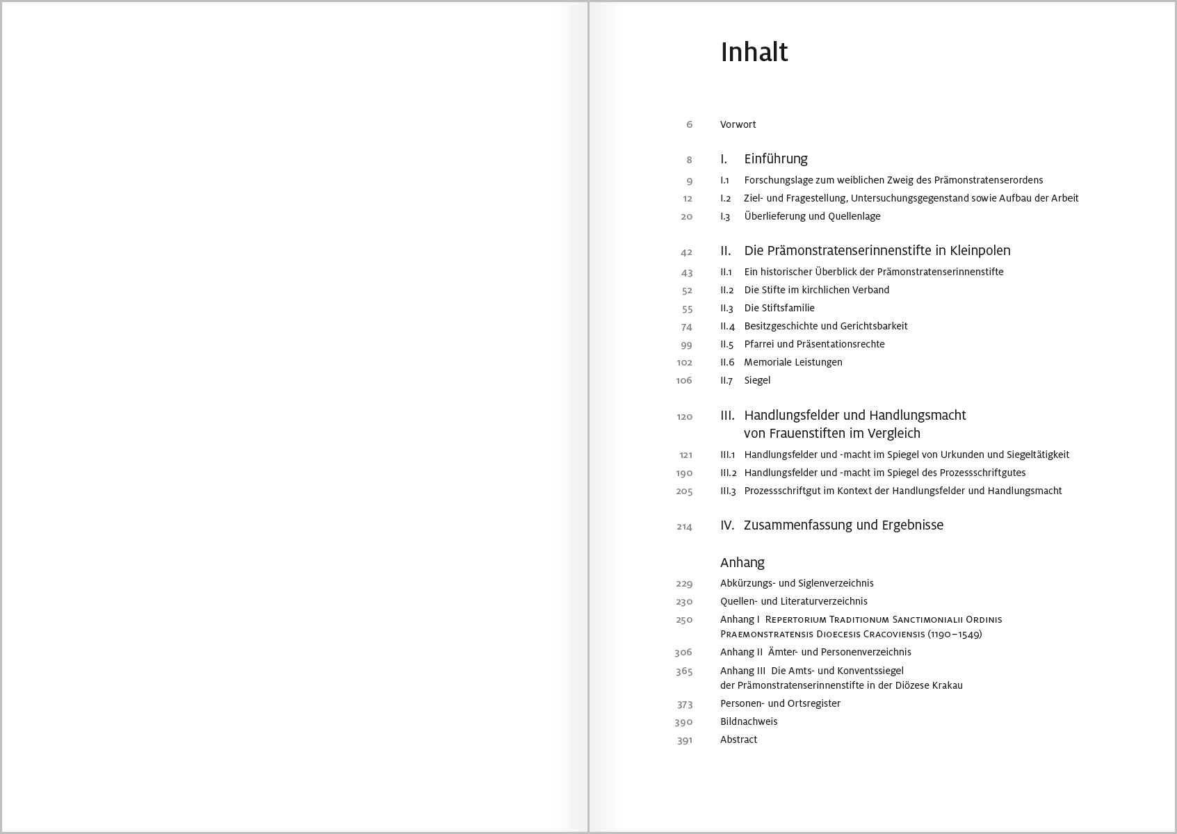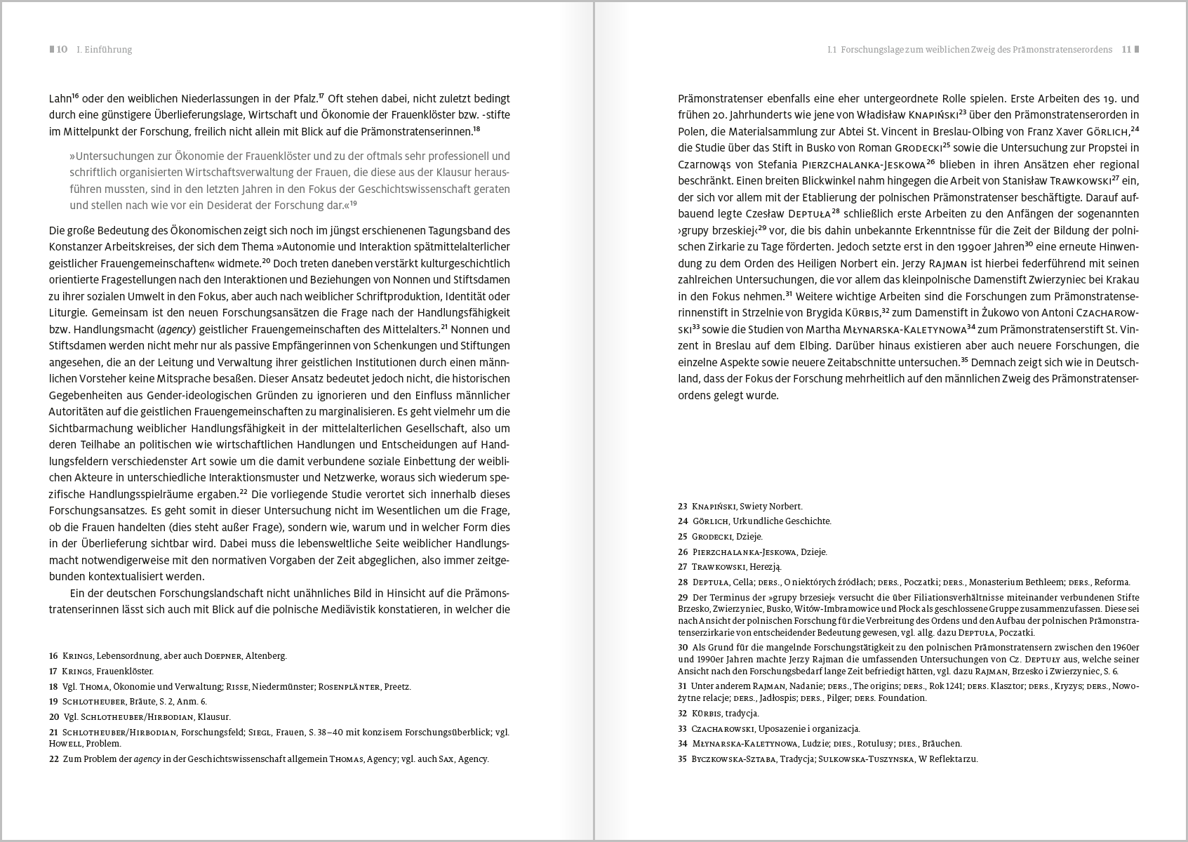 Die vorliegende Studie untersucht die Handlungsfähigkeit prämonstratensischer Frauenstifte des Mittelalters am Beispiel der vier Damenstifte der Diözese Krakau vom 13. bis zur Mitte des 16. Jahrhunderts. Ausgangspunkt ist die in der Forschung verbreitete Annahme, dass eine zunehmende wirtschaftliche und rechtliche Eigenständigkeit weiblicher Konvente zwangsläufig mit einem Verfall klösterlicher Disziplin, insbesondere der Klausur, einhergegangen sei. Ziel der Arbeit ist es, diese Deutung kritisch zu überprüfen und die tatsächlichen Handlungsmöglichkeiten prämonstratensischer Stiftsdamen differenziert zu bestimmen. Im Zentrum stehen Fragen nach der agency der Stiftsdamen, nach den Rollen von weiblichem und männlichem Leitungspersonal sowie nach den normativen und sozialen Rahmenbedingungen, innerhalb derer weibliches Handeln möglich war. Methodisch verbindet die Studie eine institutions- und ordensgeschichtliche Perspektive mit einem akteurszentrierten Zugriff auf Grundlage urkundlicher Überlieferung und pragmatischer Schriftlichkeit. Die Arbeit versteht sich als exemplarische Fallstudie und zugleich als Beitrag zur vergleichenden Erforschung weiblicher Klöster und Stifte im spätmittelalterlichen Europa.